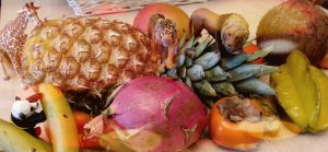 The all-female crew arrived bearing gifts of amazing vegan food (perhaps they saw my Facebook post about being a mediocre cook!) and even presented me with some inspiring books and a generous basket of exotic fruit, so I had fun with my daughter later that evening trying to crack the coconut open with a hammer and she created a waking dream jungle with toy animals who played among the passion fruit and miniature bananas.