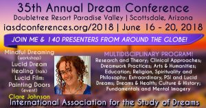 The International Association for the Study of Dreams (IASD) organises yearly conferences where dreamers from all over the world come together to connect. It also has online dream conferences. The next one is in Phoenix, Arizona, June 16-20, just weeks away now!